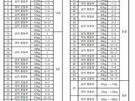 4) 선수 계체시 1.5KG 이상 차이가 있을시에는 선수 보호 차원으로 1회에 실격처리함.