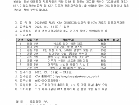 | 공지 | ![]() | 인천시태권도협회 | 5390 | 2025년 12월 31일 | |